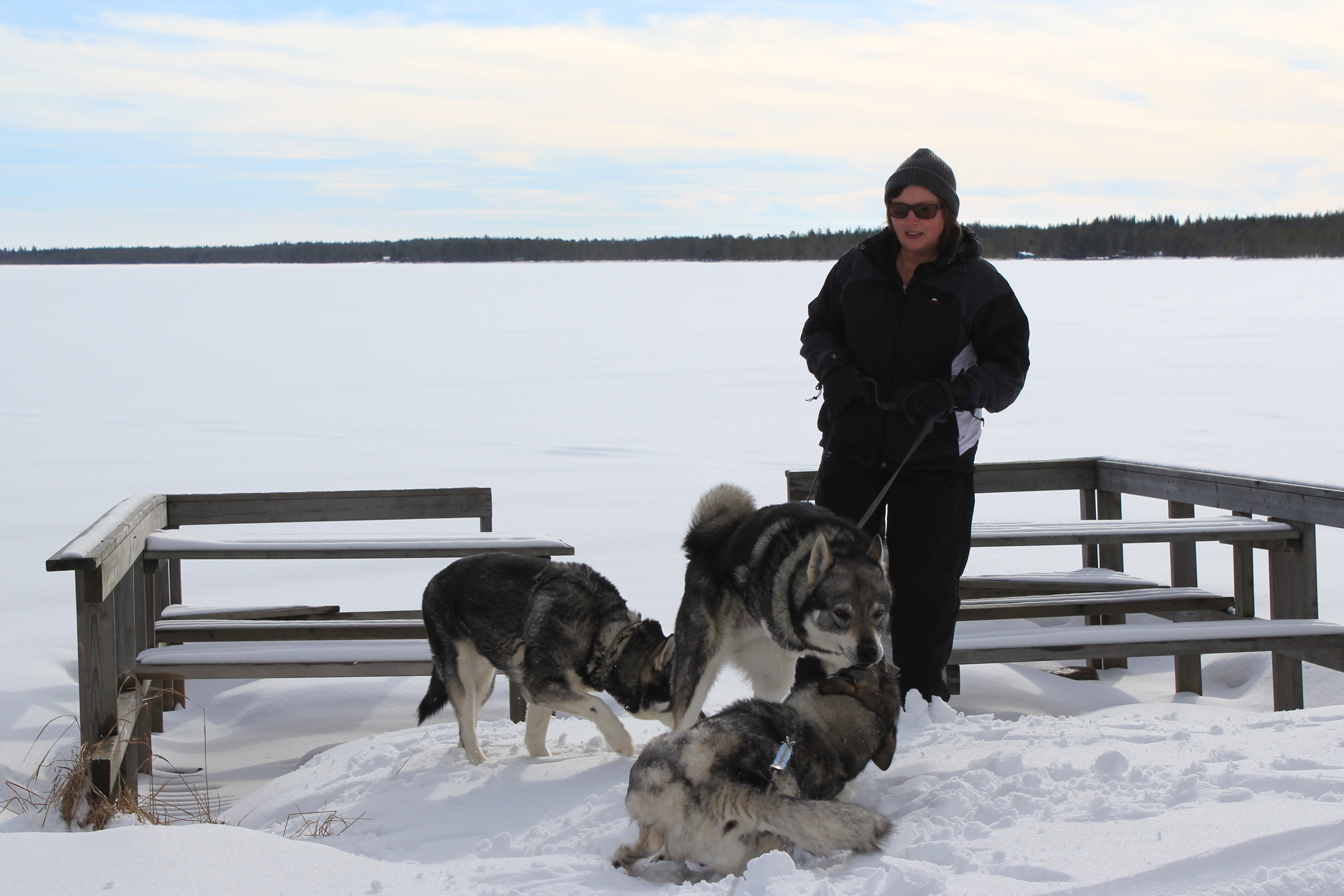 I dag har vi haft en riktigt fin vårdag. Temperaturen gjorde en sväng upp till +7 grader. Vi var ute och gick med hundarna i två timmar. Bessys löp gjorde promenaden lite rörig, Farkas håller hela tiden koll på henne och sliter i kopplet. En räv har spårat i nysnön runt byn. Märkligt vad mycket spår det blir under en natt.