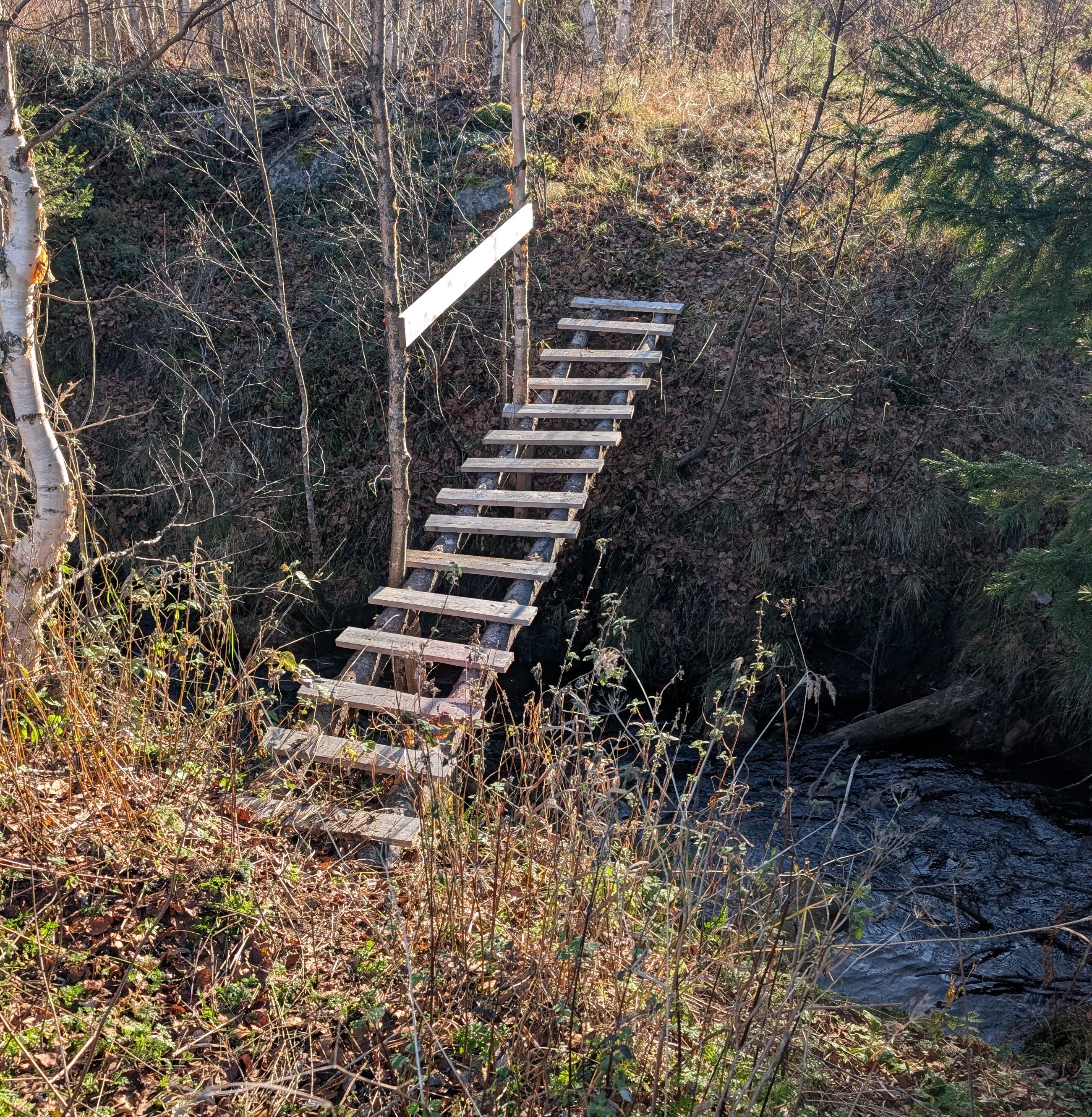 vid Iso Kenttä. Han fick balansera över en osäker spång. Av spåren kunde jag konstatera att det var ett stort