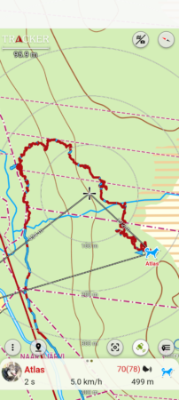 område 6 med Atlas. Han gjorde kortare sök. Samtidigt var två hundar på väg söderut. Atlas började röra sig norrut.