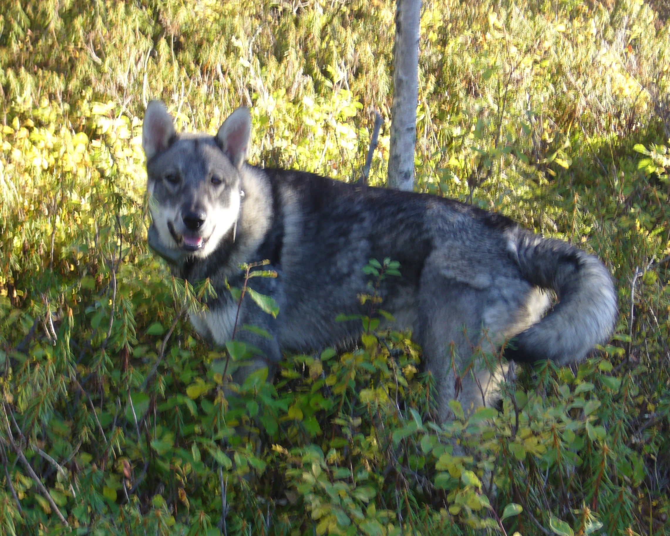Fin dag med Phoenix. Tio minuter efter släpp hade han fast ett ensamt djur. I sakta gångstånd gick djuret över en bäck. Phoenix simmade inte över. Sedan var det en lång sökrunda. Han tog upp en kviga som inte stannade utan rusade förbi oss. Phoenix fick efter nästa runda upp en ko med kalv. Fint ståndskall i 30 min. Jag lyckades ta mig på ståndet och hade bara att hitta läge när en annan hund kom på ståndet. Det blev gångstånd i en km. Jag lockade bort Phoenix i och med att det var en annan hund med. Jag såg att han inte var nöjd med att skälla i par. Det känns att vi kommit långt med hans jaktträning. Efter att första älgen blev skjuten för honom har söket lossnat. Han har nu ett riktigt bra sök för att vara strax över nio månader. En viktig framgångsfaktor är nog att inte rusa på utan låta hunden själv driva på utvecklingen.