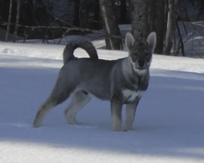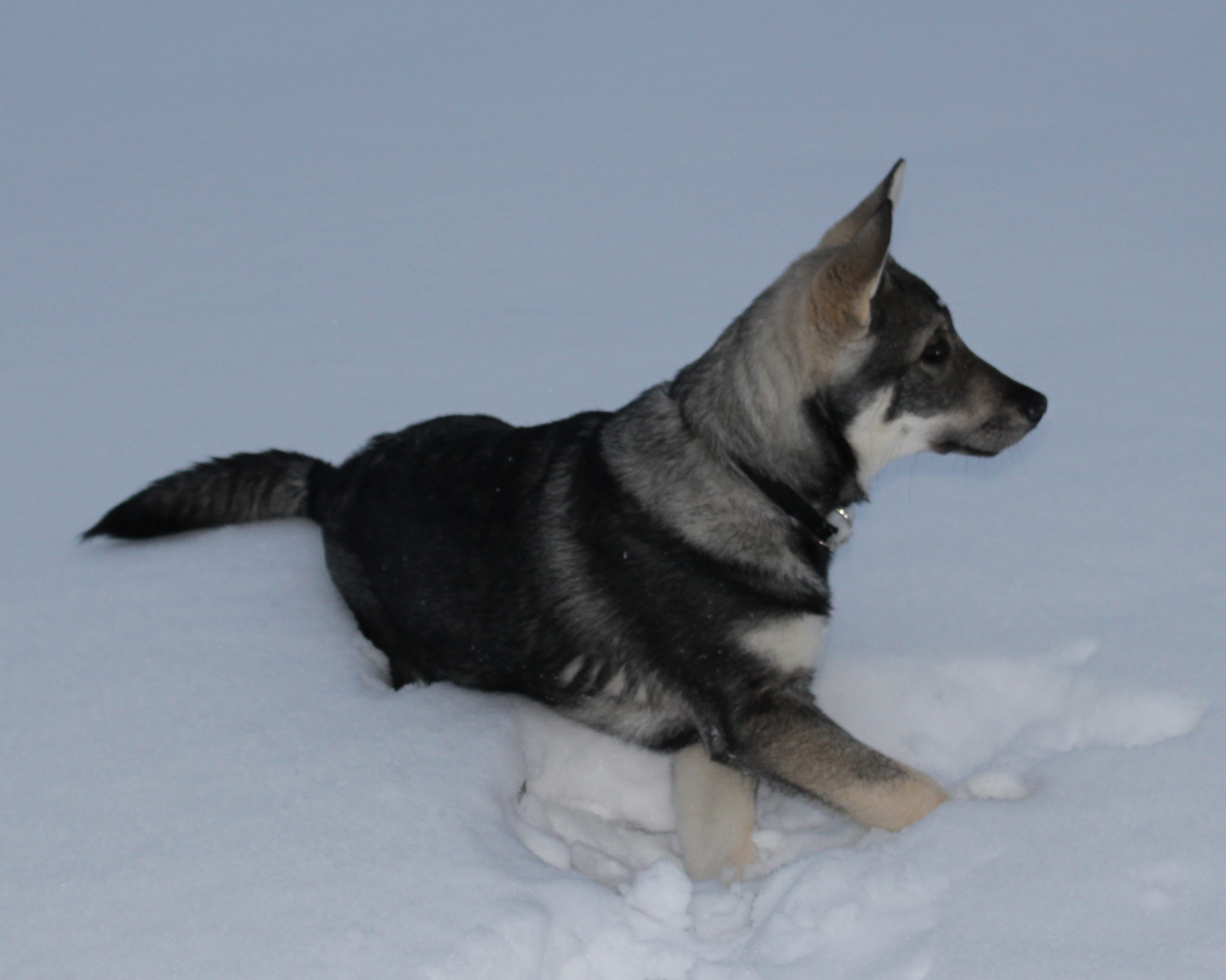Idag blev valpen tre månader. Han är 42 cm och väger 13,7 kg. Hoppas att han inte växer för snabbt. Men det är kanske så att han växer snabbt nu i början. Han blev vaccinerad förra veckan. Vi gjorde även besiktning på Bessy. Det var inga fel på henne så nu kan jag höja hennes livvärde. Vi har haft fin skare i några dagar. Det har varit fint att komma ut med valpen. Igår såg jag två sångsvanar flyga över byn. Våren är tidig i år.
