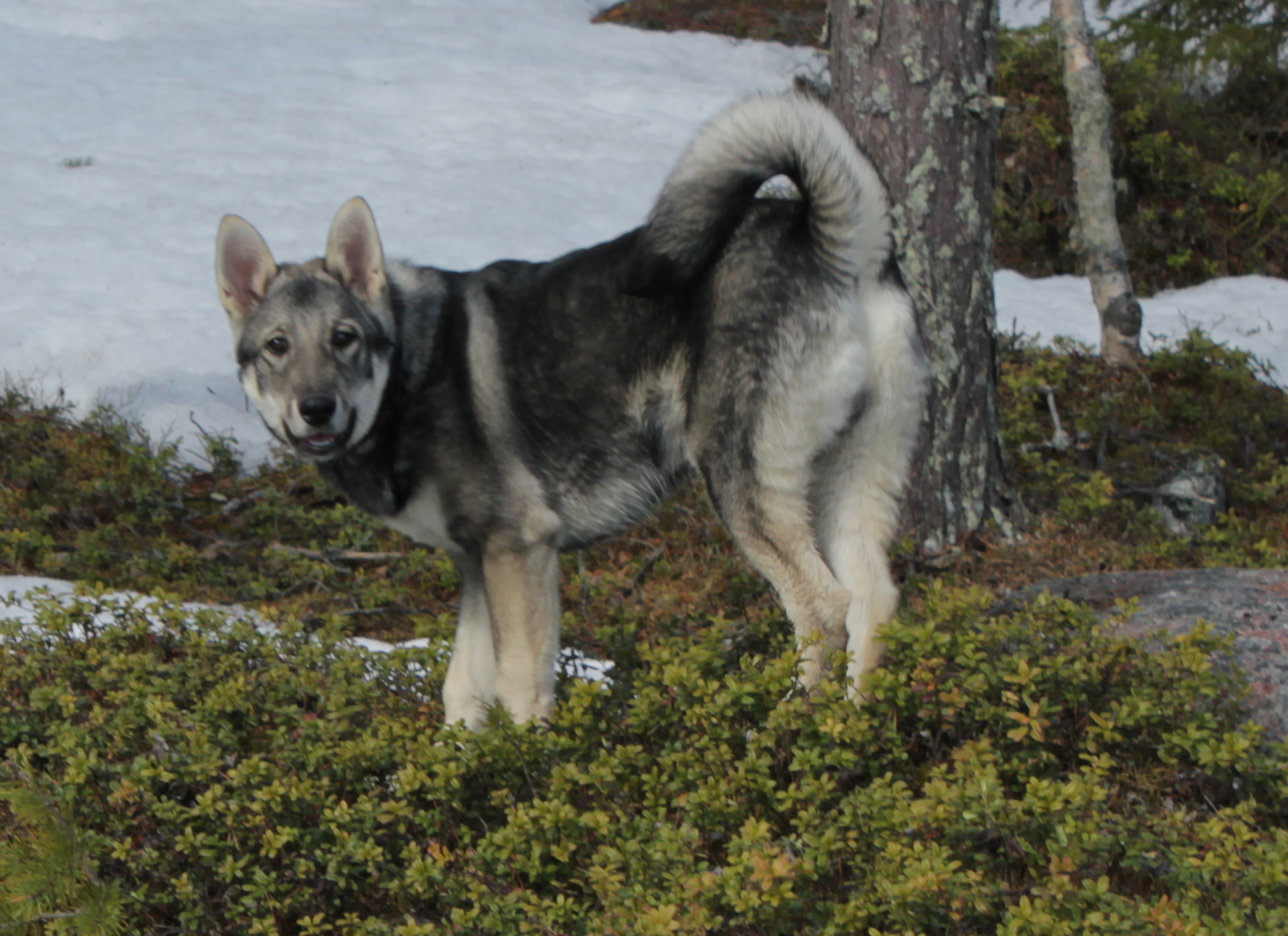 Nu har året hunnit fram till första maj. Otroligt fort året har runnit fram. Vårfloden har runnit rejält i Keräsjoki men nu sjunker nivån. Jag fick se två uttrar för några dagar sedan. En mycket trevlig upplevelse. Tyvärr hade jag inte kameran med. Älgarna har börjat röra på sig. Nu hoppas vi att komma på spår med Phoenix. Det blir riktigt roligt att få se hur han reagerar. Det är inte helt snöfritt så det är lite besvärligt att komma ut i naturen. Jag har en älgklöv i frysen som blir till att anlägga spår och testa valpen.